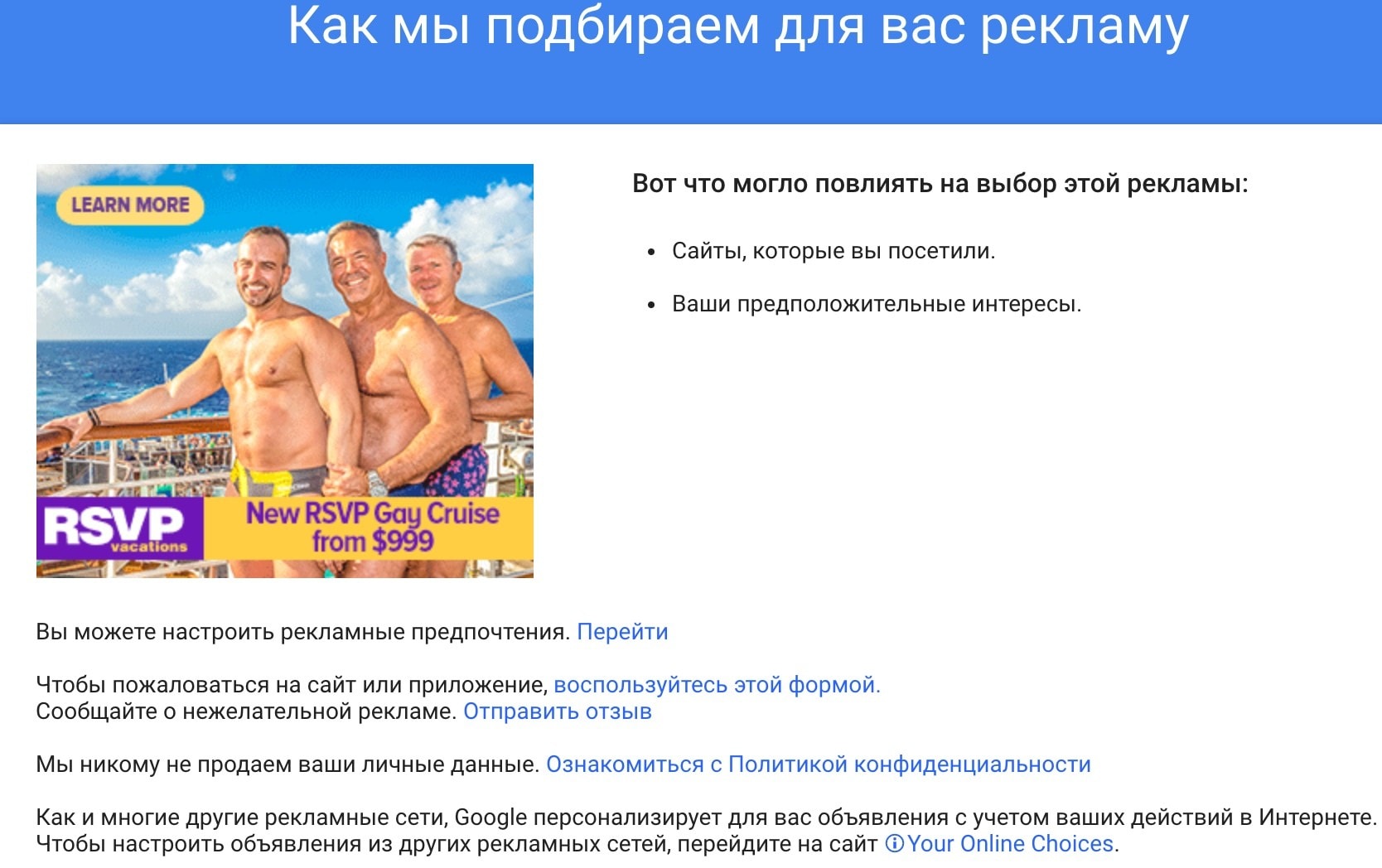 Гугл - зачем ты мне это показываешь??? ))) в чём я провинился??? тем что мне за 40? или какие еще параметры повлияли???