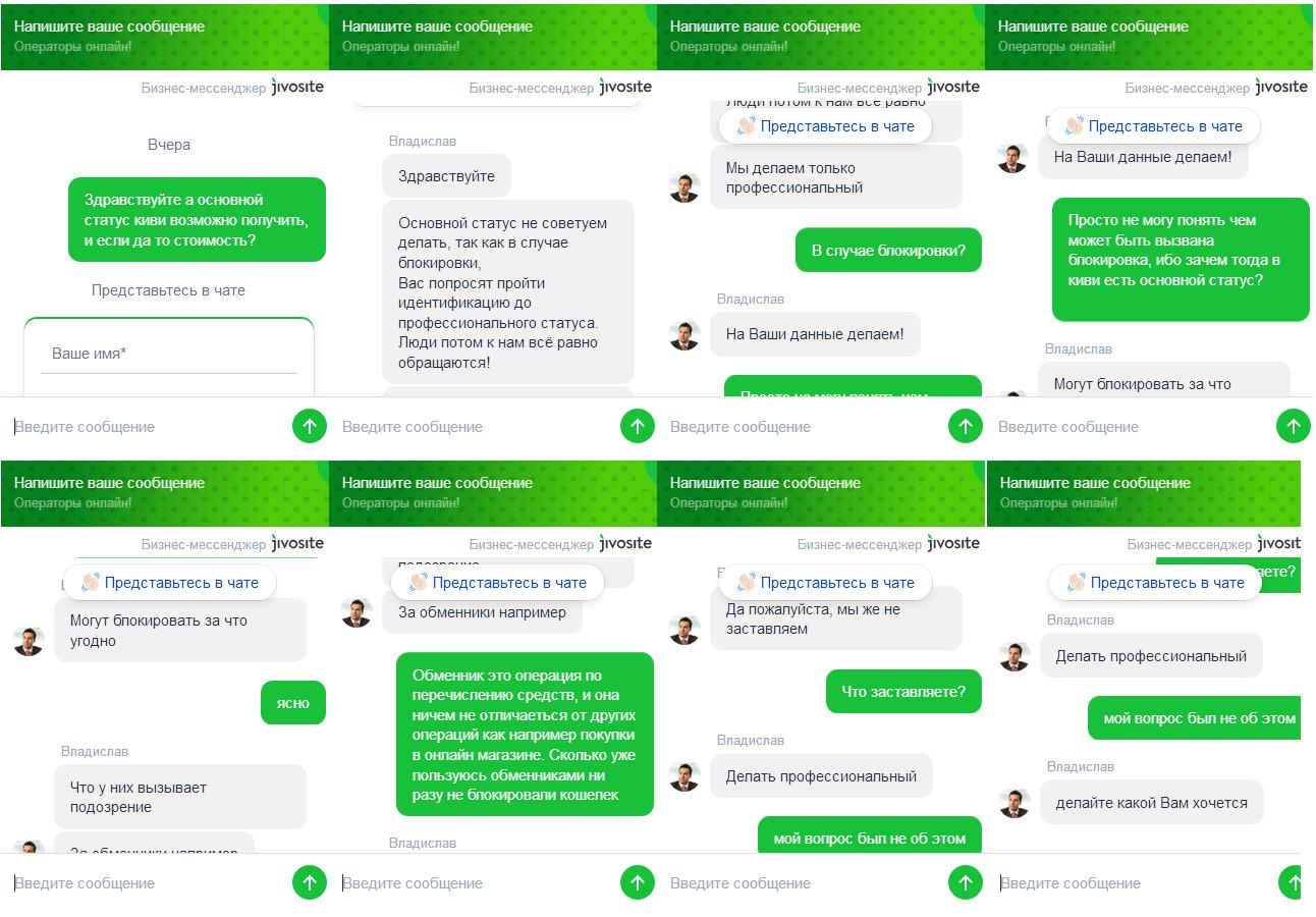 У меня состоялся диалог с оператором на i-kiwi но доверия не внушил, скрины ниже и собственно хотелось бы услышать людей кто проходили через них верификацию давно, ведь судя по их словам они с 16 года работают (хотя домен по сути с 18 года эксплуатируется) , ну а так же если кому не сложно кто прошел верификацию через qiwid - работает ли все у вас сейчас?