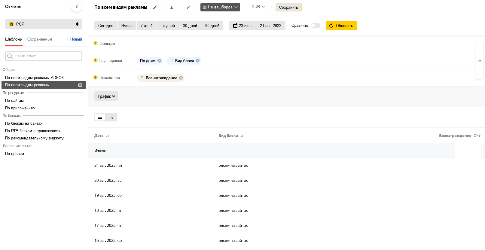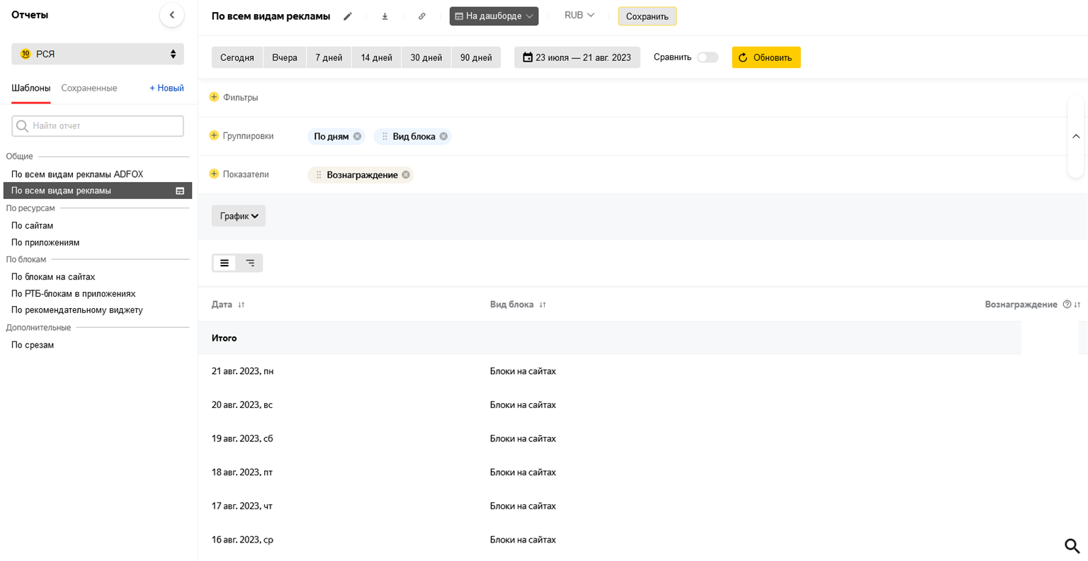 Я уверен, что не работает у всех, так что выложу тут, чтобы другие могли подтвердить или опровергнуть. Раньше при нажатии на заголовок виджета в дашборде открывался отчёт с этими же данными и параметрами. В данном случае это стандартный отчёт, который открывает https://partner.yandex.ru/v2/statistics/constructor/all_income