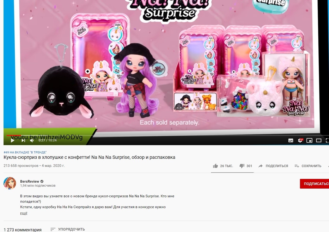 детское видео (распаковки кукол) и нету пометки и норм в трендах ютуба =)
