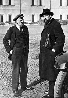 Ленин у стен Московского Кремля рядом с личным секретарём — Бонч-Бруевичем. 16 октября 1918 года