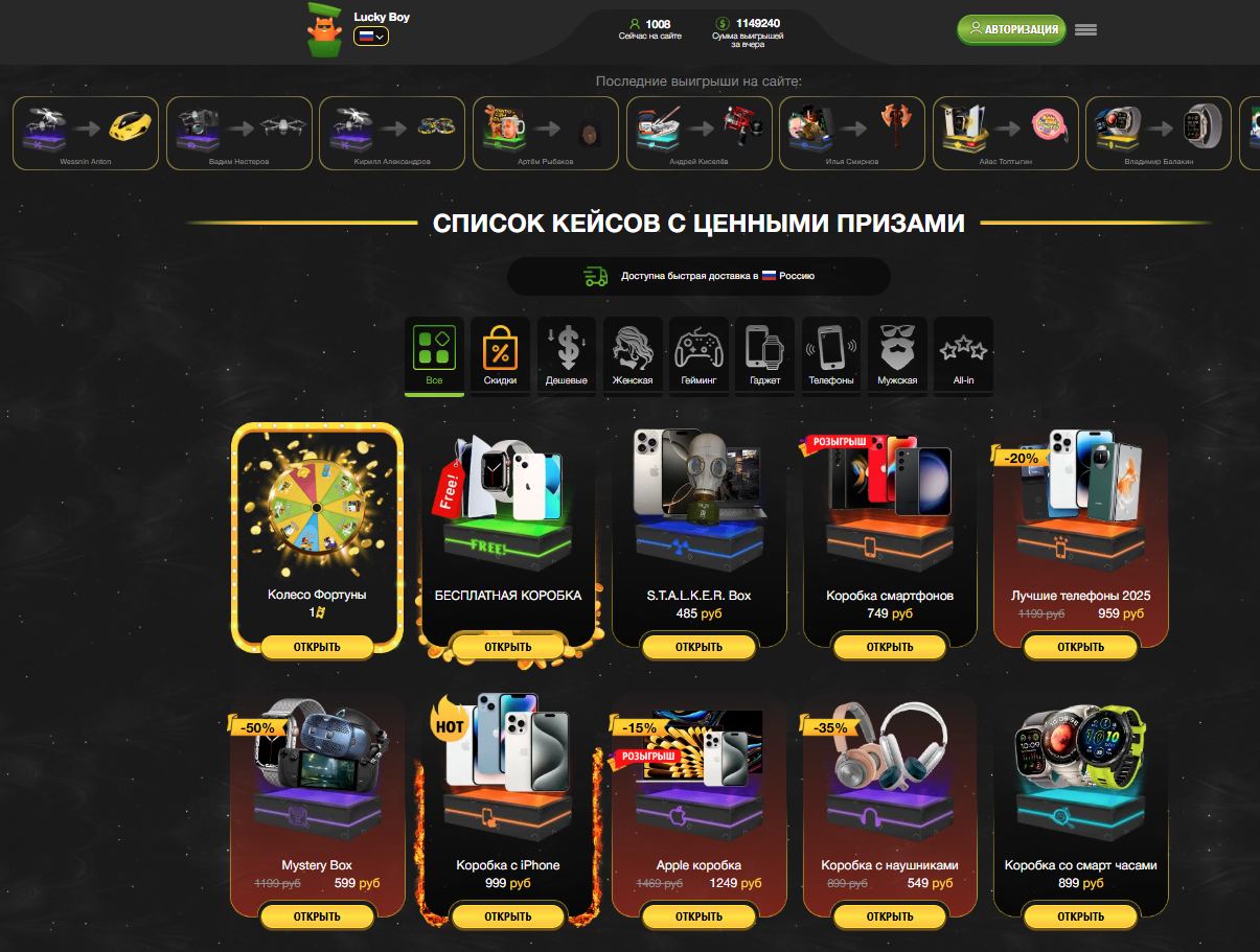 Розыгрыши коробок с призами.