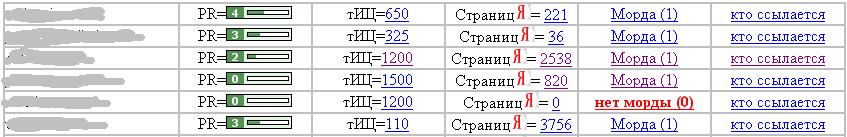 :::::страниц(количество проиндексированых страниц яндексом цифрой+ ссылка на истенное количество в яндексе)