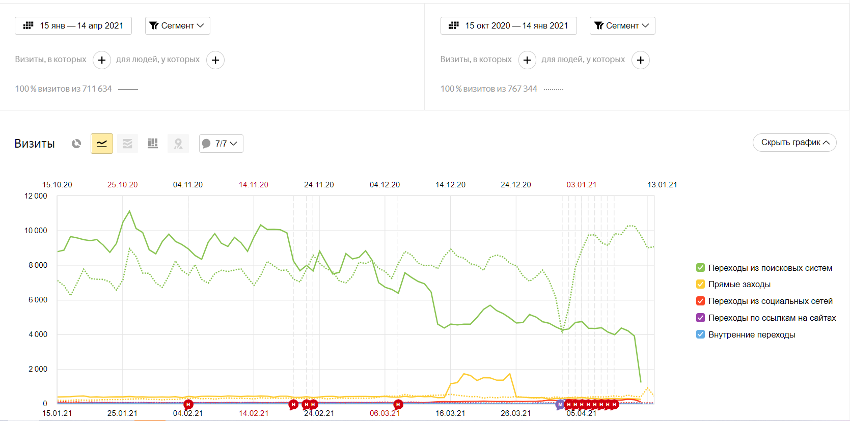 просадка на графике. сейчас по текущему дню не сильно видно, но на счетчике +30% прироста. Может Янд одумался?, а может толокеры что-то одобрили, Я просто не слежу за действиями и тд. правда.