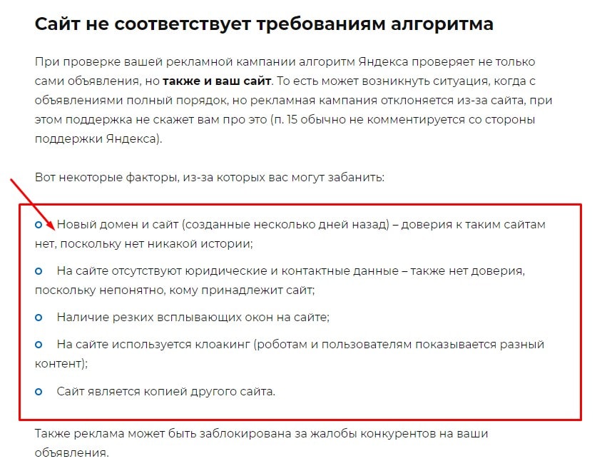 Есть клиент, который себе настраивает директ, так у него реальная компания, с офисом, сотрудниками, телефонами и документами. Сделали себе лендинг, под конкретный оффер, на лендинг не могут лить потому что постоянно П15, на основной сайт льют эти же объявления - все работает. Значит какой вопрос - к качеству сайта? Хорошо, спрашиваю это поддержке - П15, ничего не можем вам сказать.
