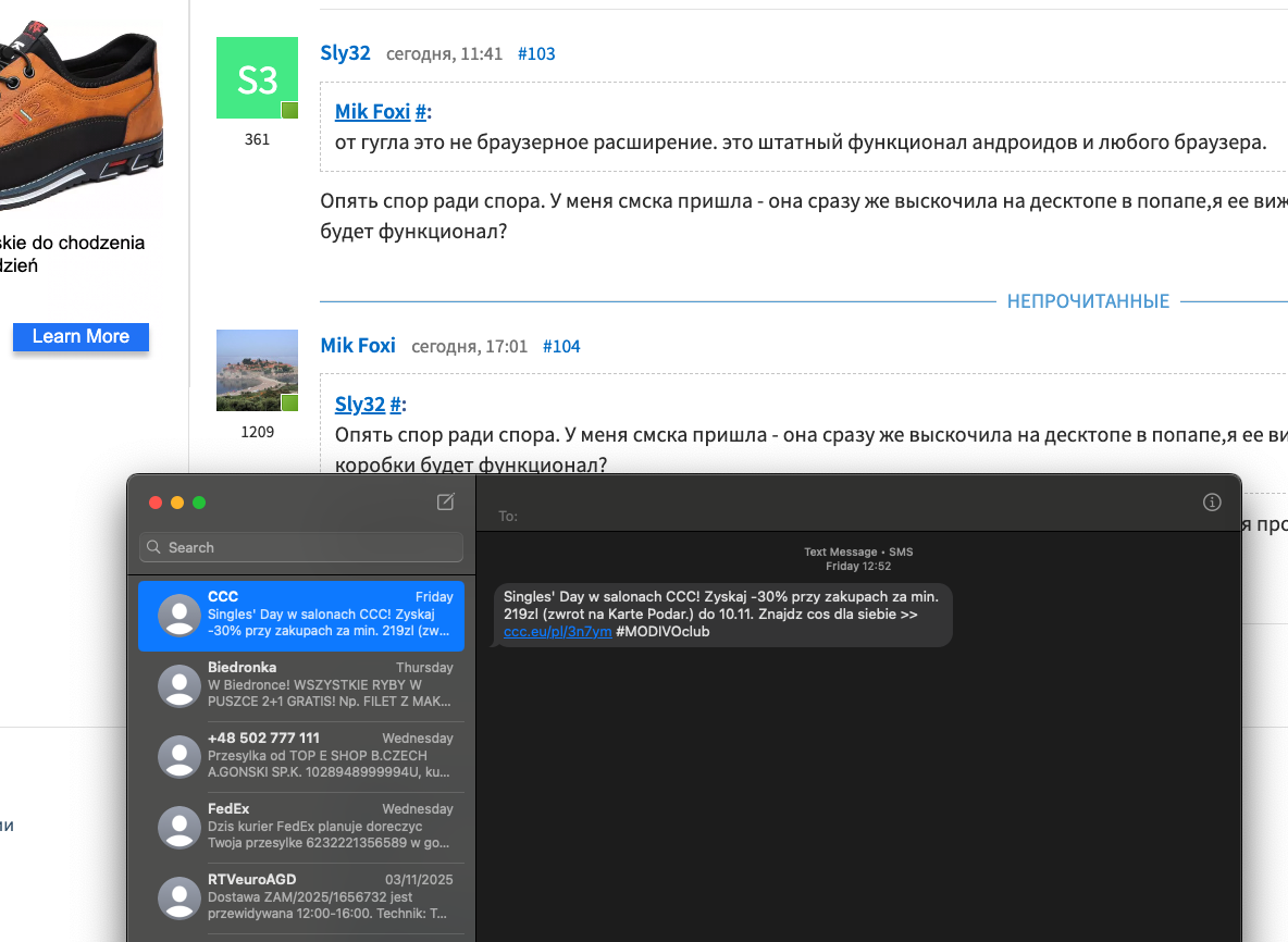 на телефоне она и так понятно что вылезла и видна сразу, и на браслете типа сяоми видно смс. я про комп, с виндой или убунтой, вылезет пуш уведомление с твоей смс в хроме, даже если твой телефон лежит в другой квартире.