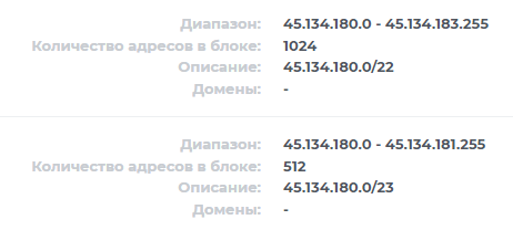 Можно же было указать только первый, 45.134.180.0/22 И это не единственный сайт, где диапазона битерики приводятся именно в таком виде.