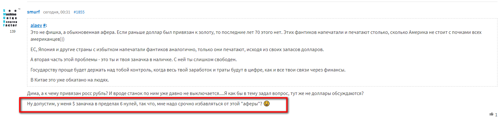 Ты влез в разговор с каким-то частным случаем про человека, который смог заработать миллионы долларов, но у него не хватает ума их сохранить под матрасом.