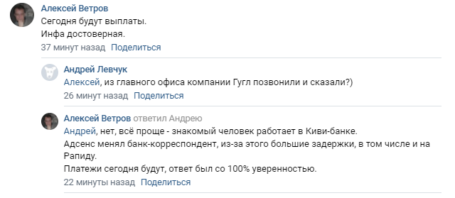 походу новый банк кореспондент гугла оказался тормозным, пишем алексею ветрову))
