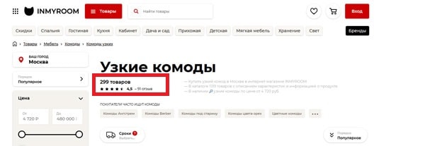 По факту же, если перемножить количество страниц пагинации на количество товаров на страницу, получается около 300.