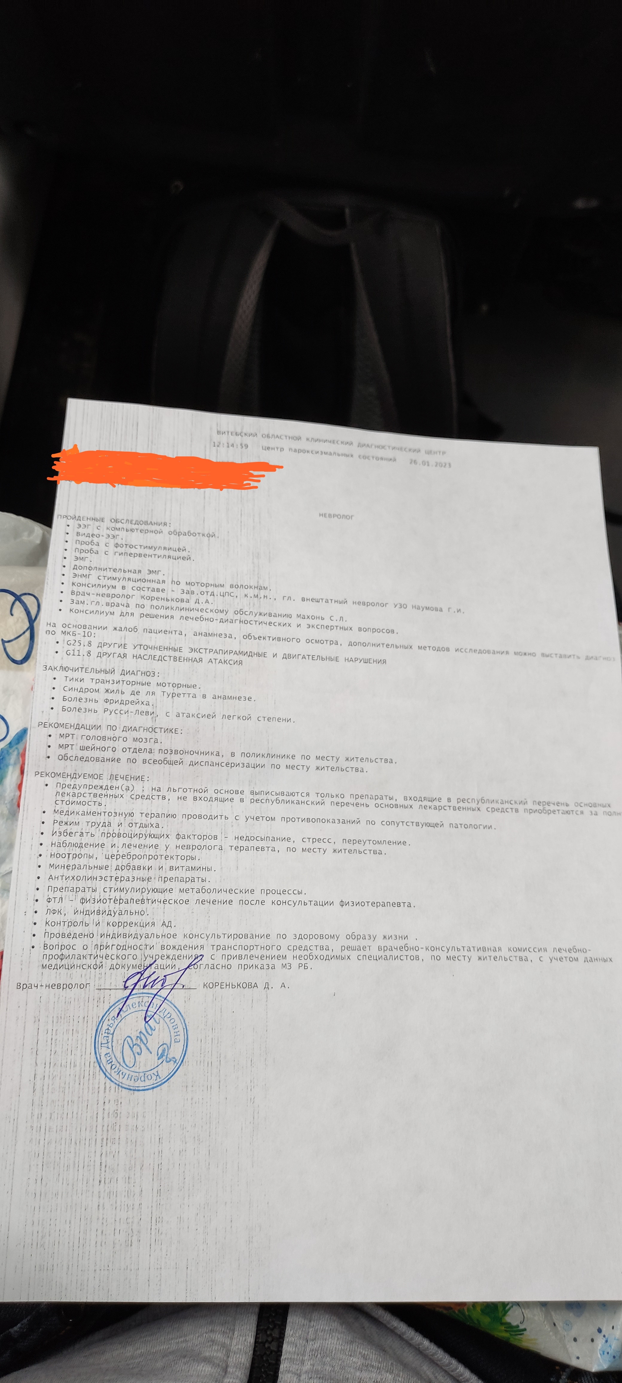 Вообщем я был в областном диагностическом центре по направлению местного невролога. Я там говорю, что хочу научится водить машину. Меня начали обследовать разными фантастическими штуками: били электрическим током, надевали резиновую шапку на череп, светили в глаза красным лазером и т.д. И в заключении написали, что права на вождение должны решать врачи из моей поликлиники.