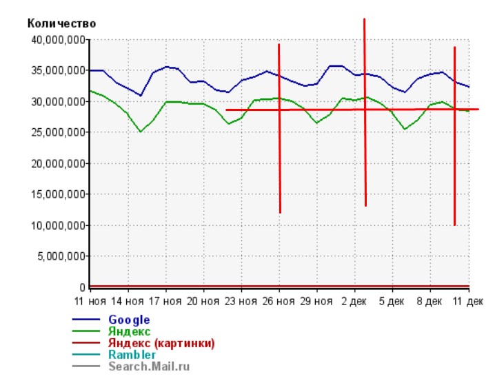 Если смотреть сайты в Li - https://www.liveinternet.ru/stat/ru/index.html - то видно сильное падение 10 декабря. В разделе "из поисковых систем" видно, что идет просадка. 3 декабря и 26 ноября (тоже среды) должно быть на уровне вторника, но 10 декабря рухнуло.