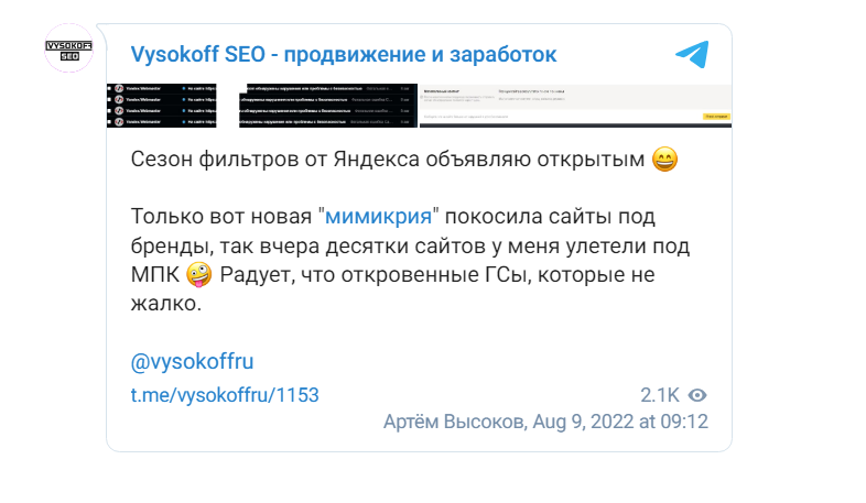 В общем, на основновной сайт прилетел МПК. На его место по всем запросам встал мой ГС, на который наваливал Хрумером 😂