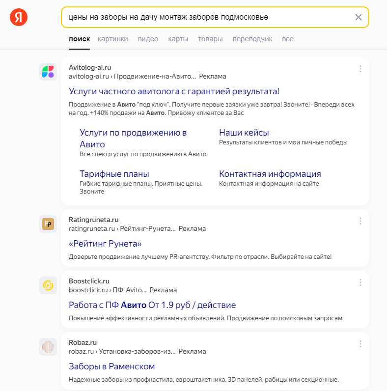 То ли лыжи не едут - то ли хз. Искал сейчас цену по забору. Рекламная выдача аттас (кстати в первой десятке так и не нашел компанию - потому что одни агрегаторы - сорри скрин не додумался сделать) - нужные сайты на 5-й странице выдачи нашел.... Ахтунг полный!!!