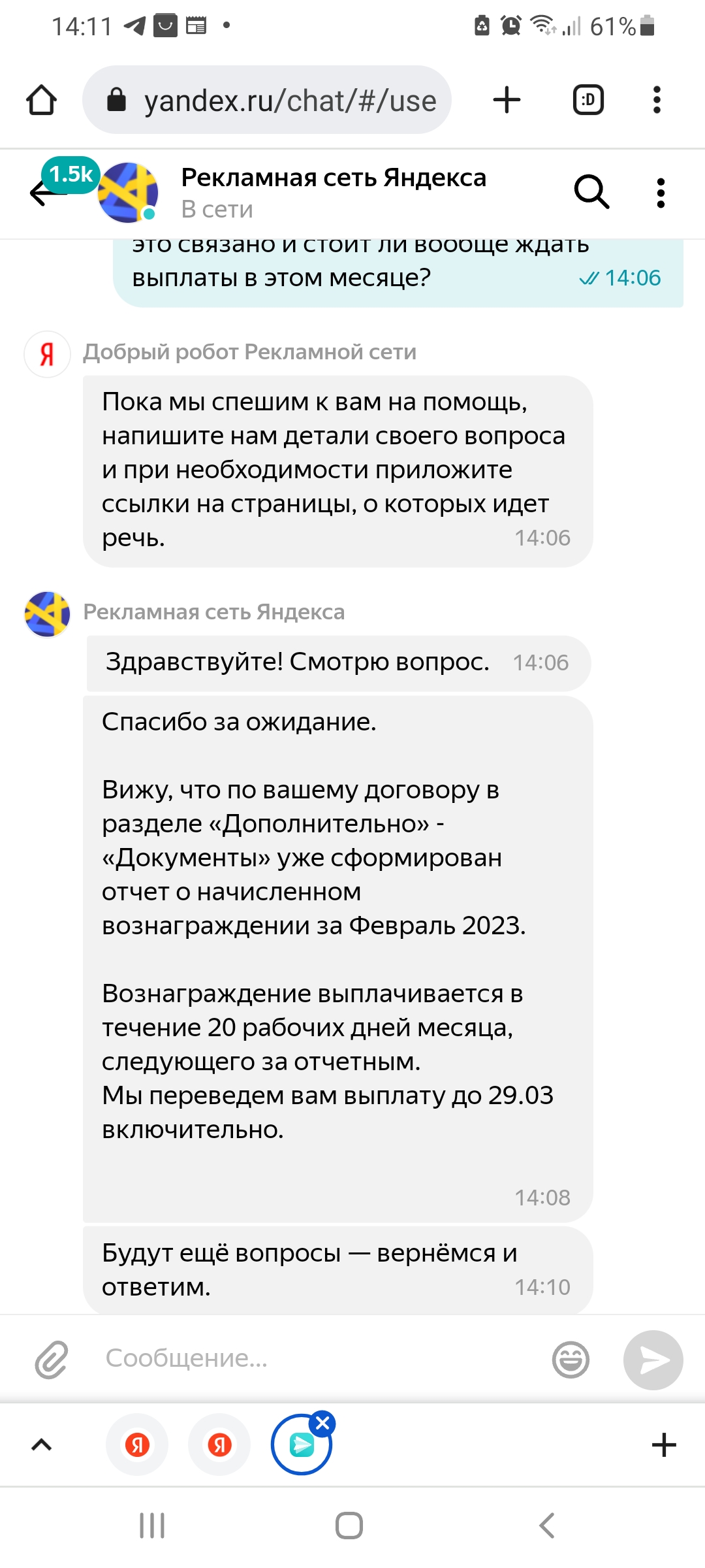 Интересно, Яндекс отчисления куда делал (ну типа счета где)? А то в Швейцарии банк обанкротился, а тут выплаты не производятся, может есть связь какая то😂 Но это не точно.
