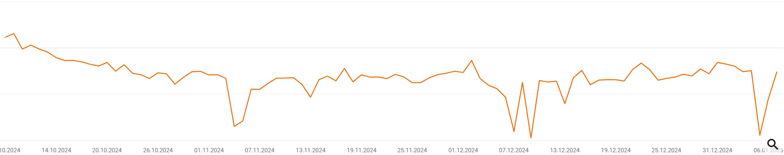 Провал по позициям в поиске был 5 января, а трафик стал падать с 8 января