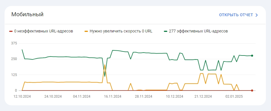 Core Web Vitals абсолютно в зелёной зоне.
