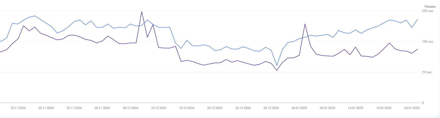 показы могут расти по разным ключам не всегда по вашему интенту, тем более вы смотрите не предметно ключи а все в скопом, там может быть что угодно, особенно на форумах
