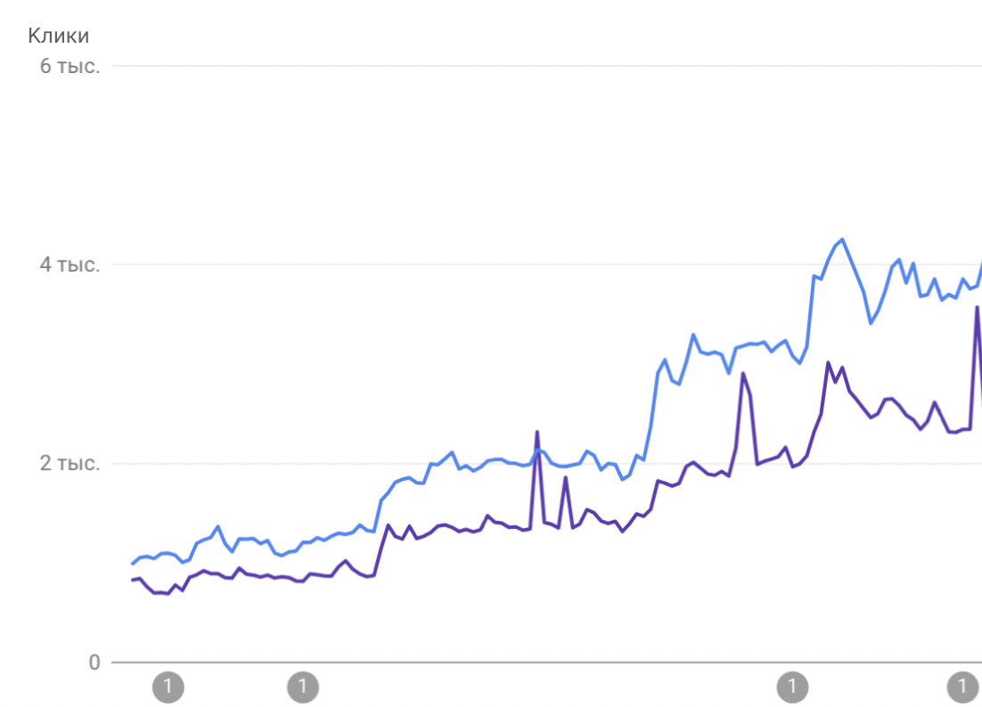 У меня с Яндекса сразу пошел какая то видимость и трафик, в Google 1-2 рандомных клика за полтора месяца.