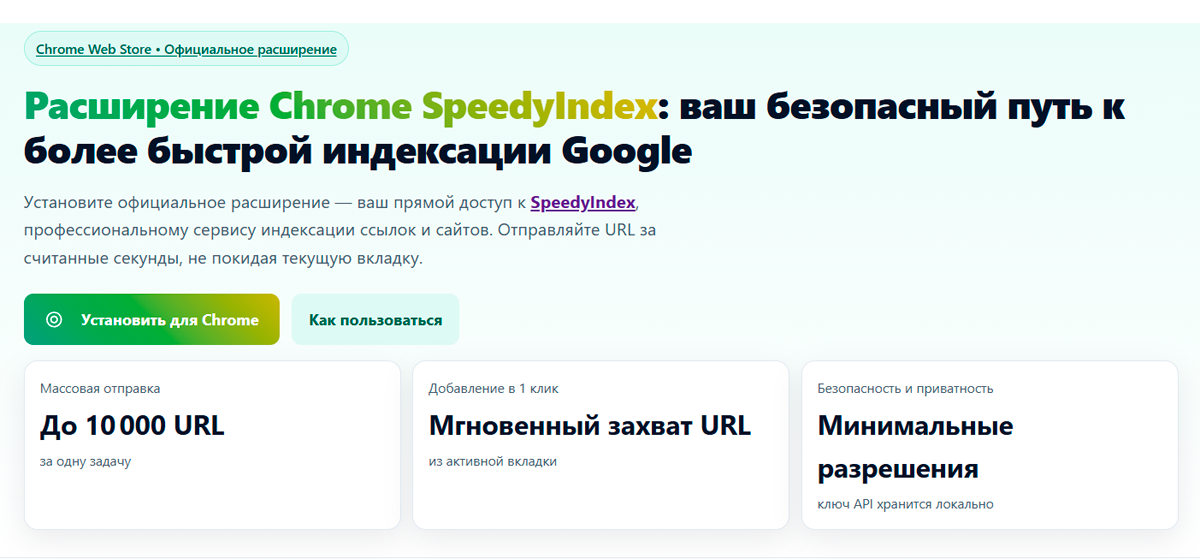 Официальная страница расширения: https://chromewebstore.google.com/detail/speedyindex-link-indexing/ddadnbfgobchhhekhegnnjbakpbgilep