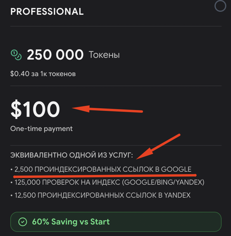 получается 100 токенов за 1 проиндесированную ссылку... но услуга не пашет
