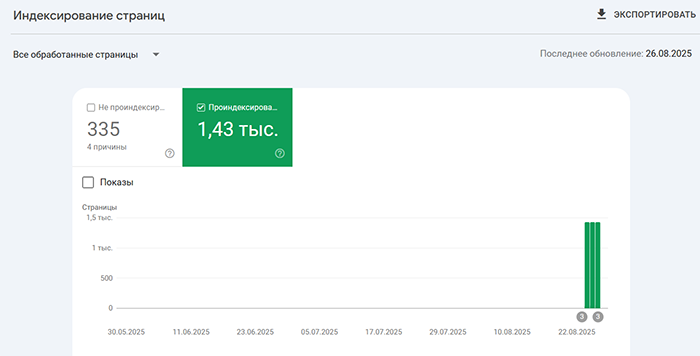 Опыт работы с сервисом положительный. Индексирую несколько магазинов весь август и вижу, что с помощью сервиса можно реально удерживать индексацию страниц где-то на необходимом уровне. Т.е. я ставлю сатмап на отслеживание и все новые страницы автоматом идут на индексацию. Помимо этого раз в неделю отправляю то, что выпадает из индекса. Очень удобный функционал и хороший процент индексации по Гуглу и Яндексу. Бэклинки тоже индексируются. Рекомендую сервис и прошу промокод на продолжение тарифа, не успел на акцию выходного дня (((. Тикет в ТП написан!