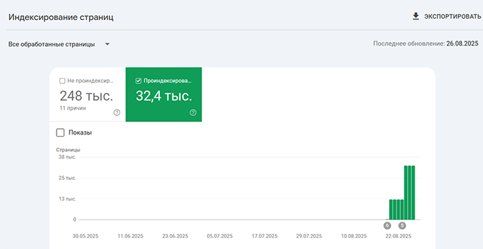 Апдейт Google, скриншоты из Google Search Console сайтов наших Заказчиков