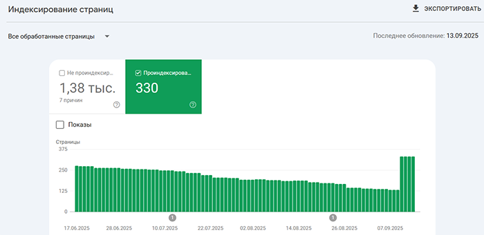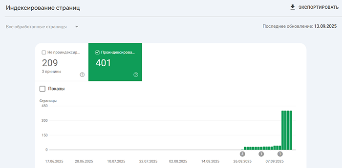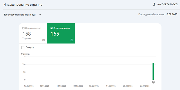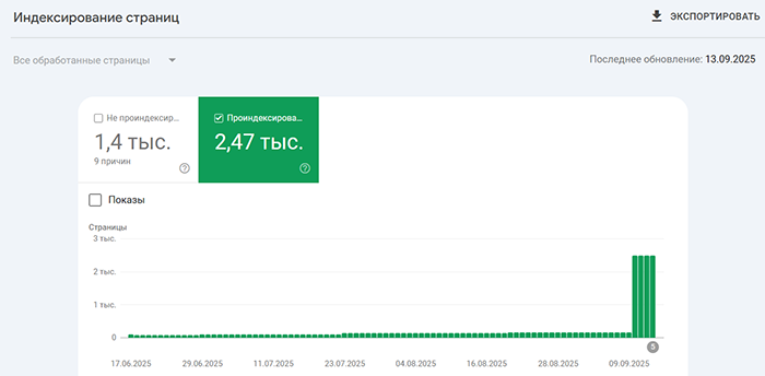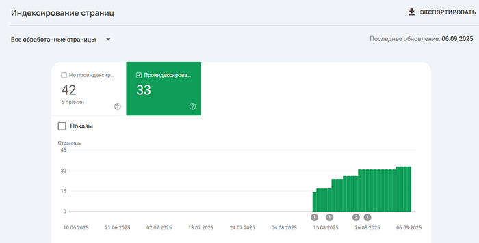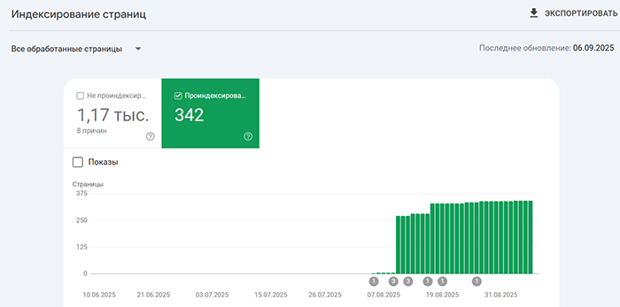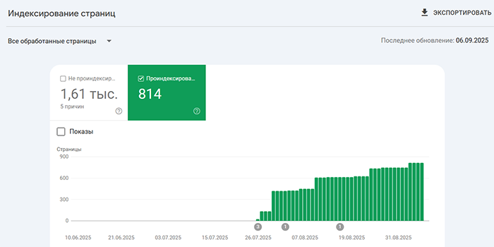 Индексация сайтов Заказчиков на скриншотах из Google Search Console