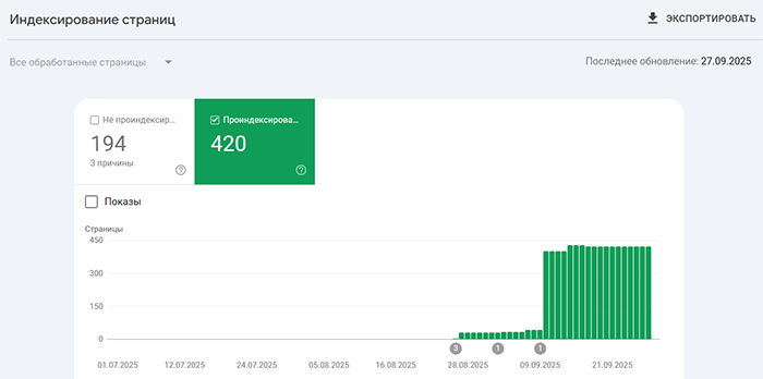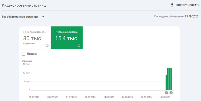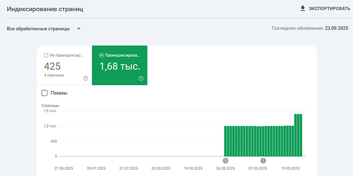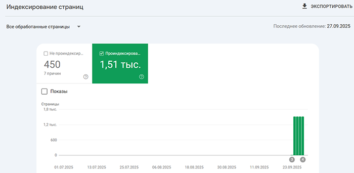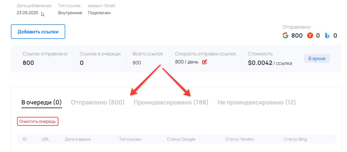 Результат индексации на скриншоте