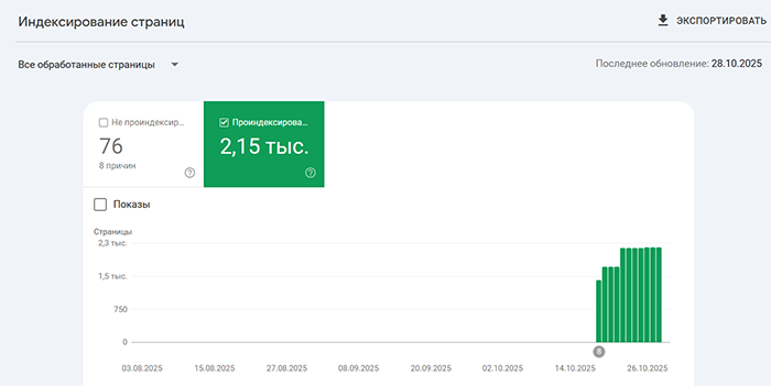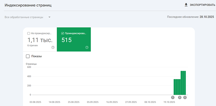 Примеры индексации сайтов Заказчиков