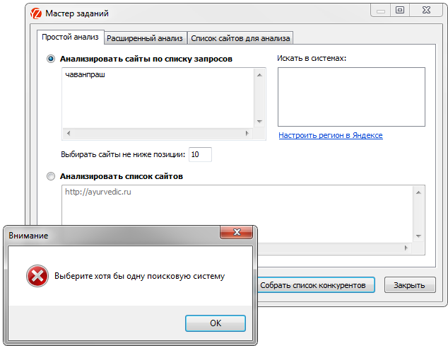 Мне говорят: выберите хотя бы одну поисковую систему для анализа, а где её выбрать?