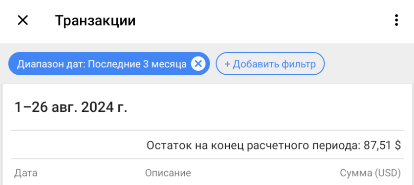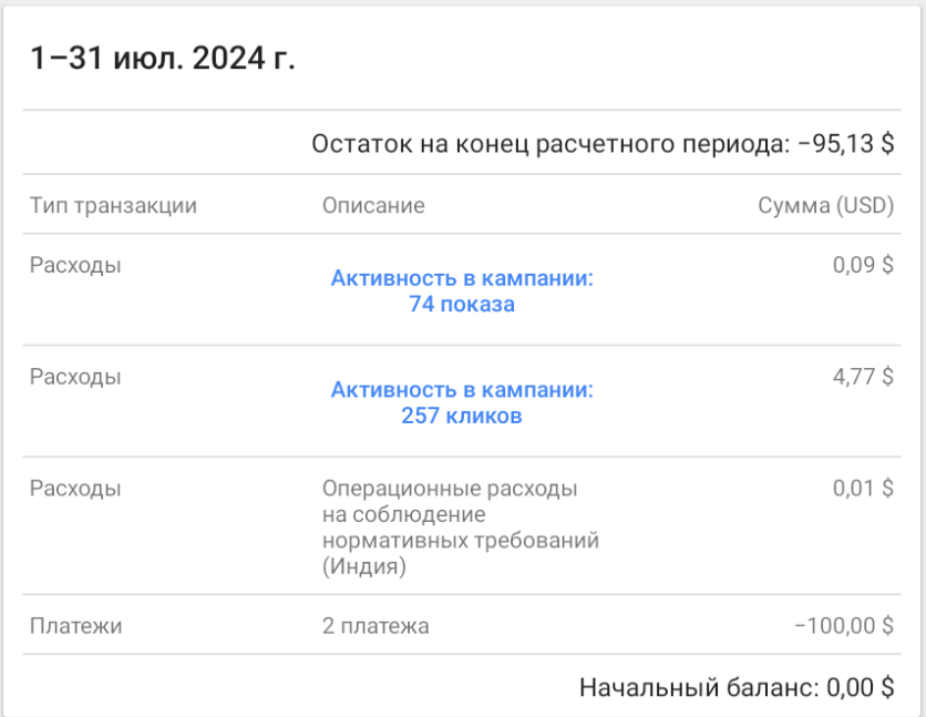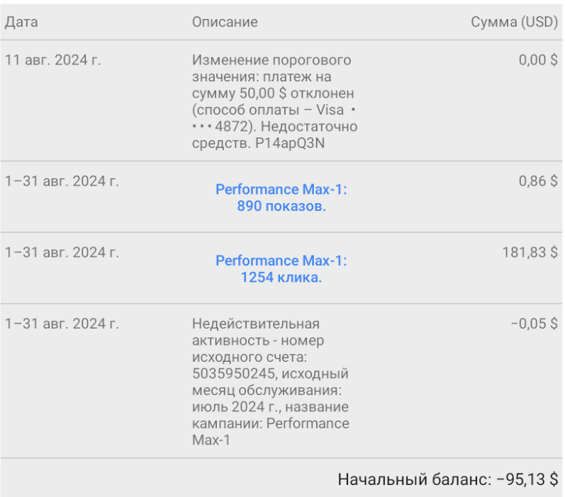 28 июля пополнилась карта для списания с неё оплаты Google Ads на 100$/