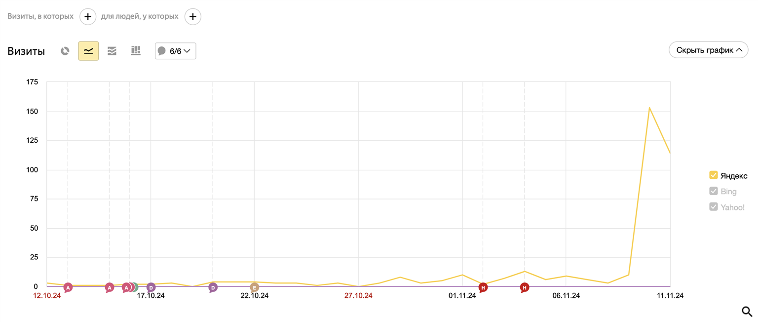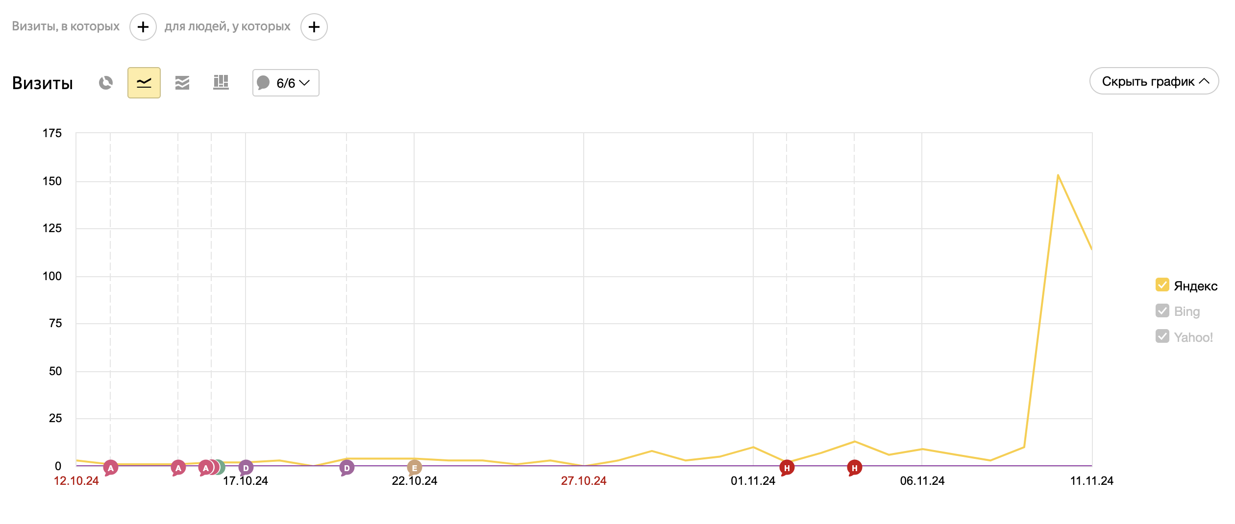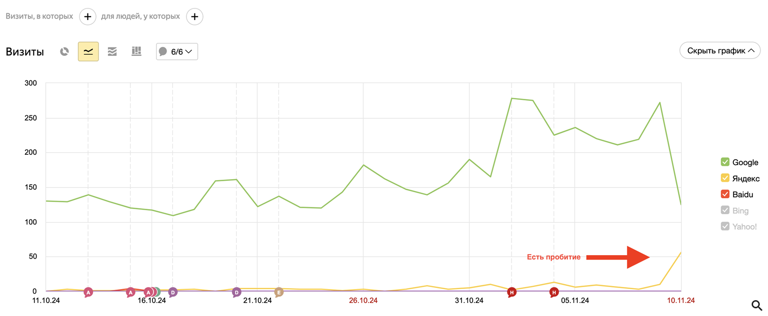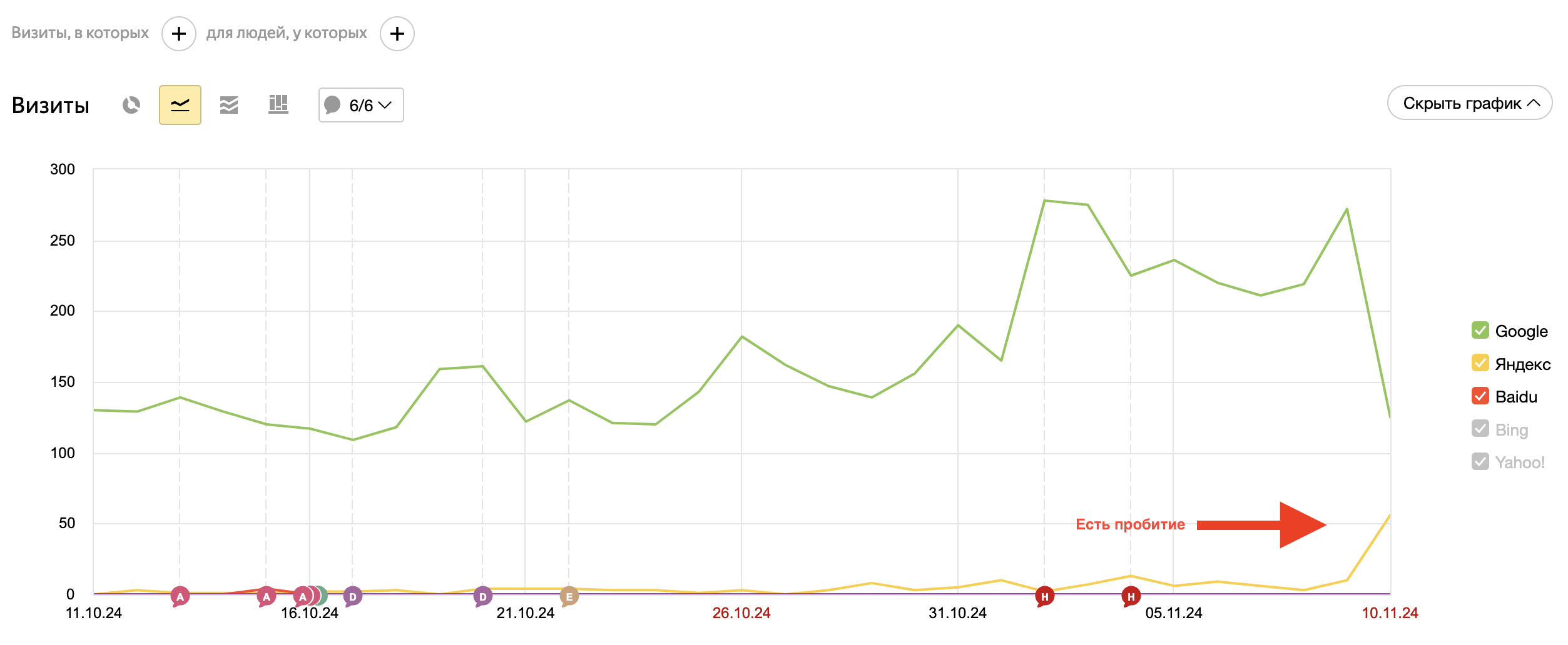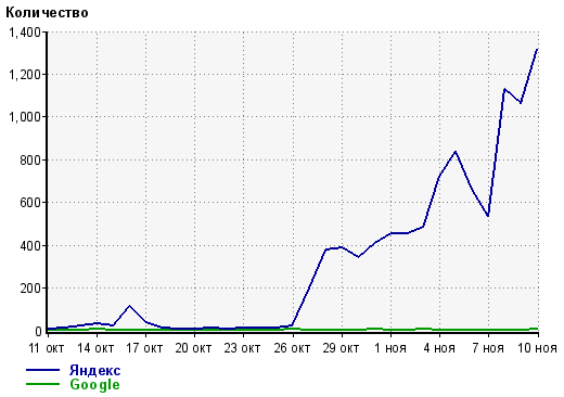 Трафик был до этого из Google. Сайт в Google плавно и предсказуемо растёт. Но вот ПФ по ссылке были на порядок лучше.