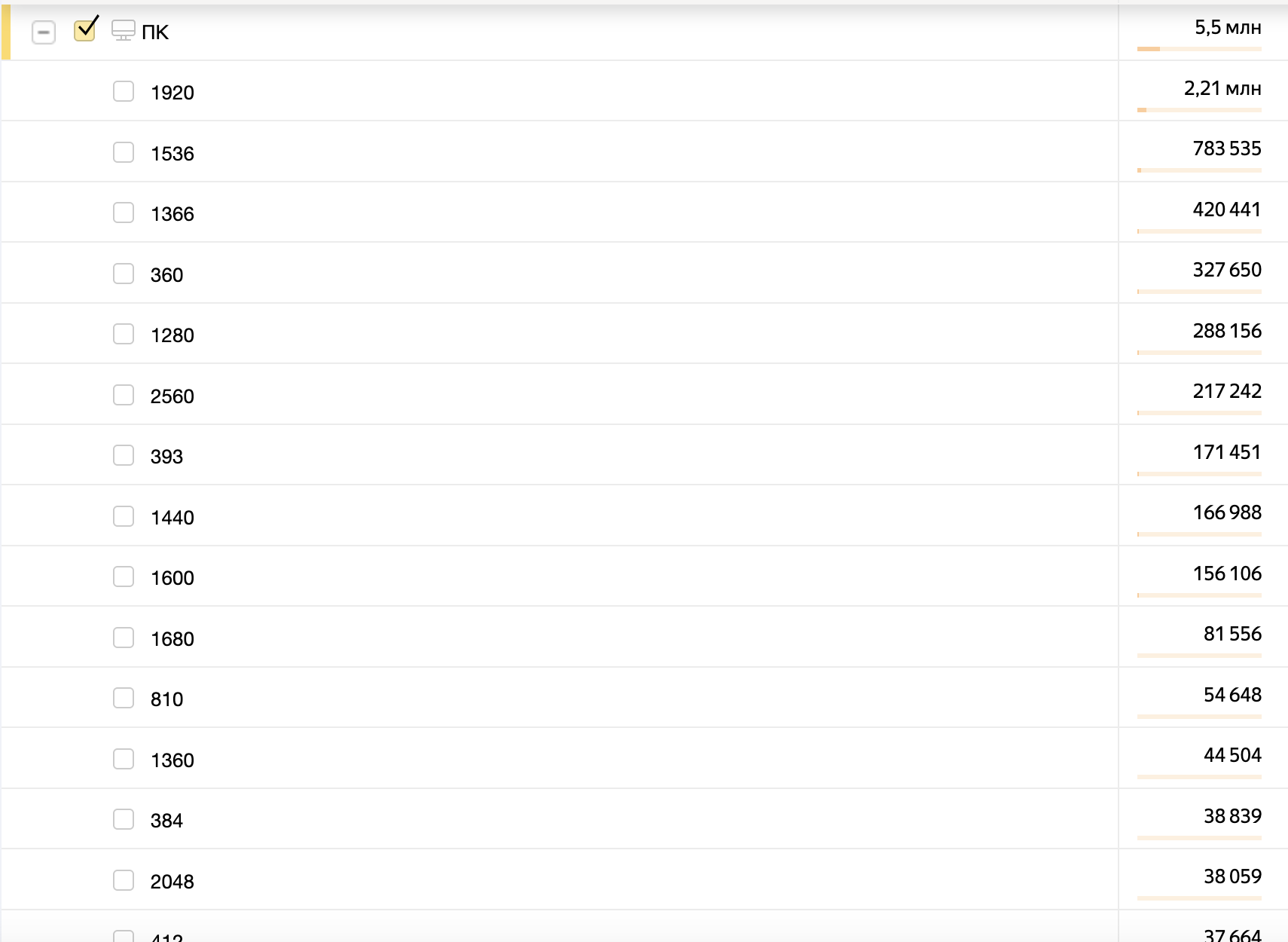 Если интересно — могу заскринить свои разрешения популярные. У меня 90% с мобилок, трафика 100.000 в сутки примерно.