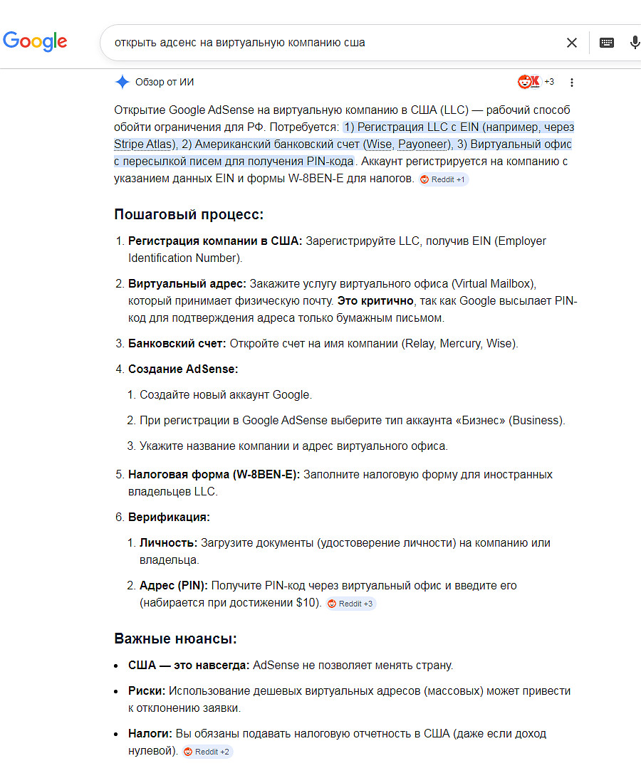 P.S. Если у вас доход в Адсенсе составляет 5-10к долларов в месяц, то вполне резонно рассмотреть открытие фирмы в США.