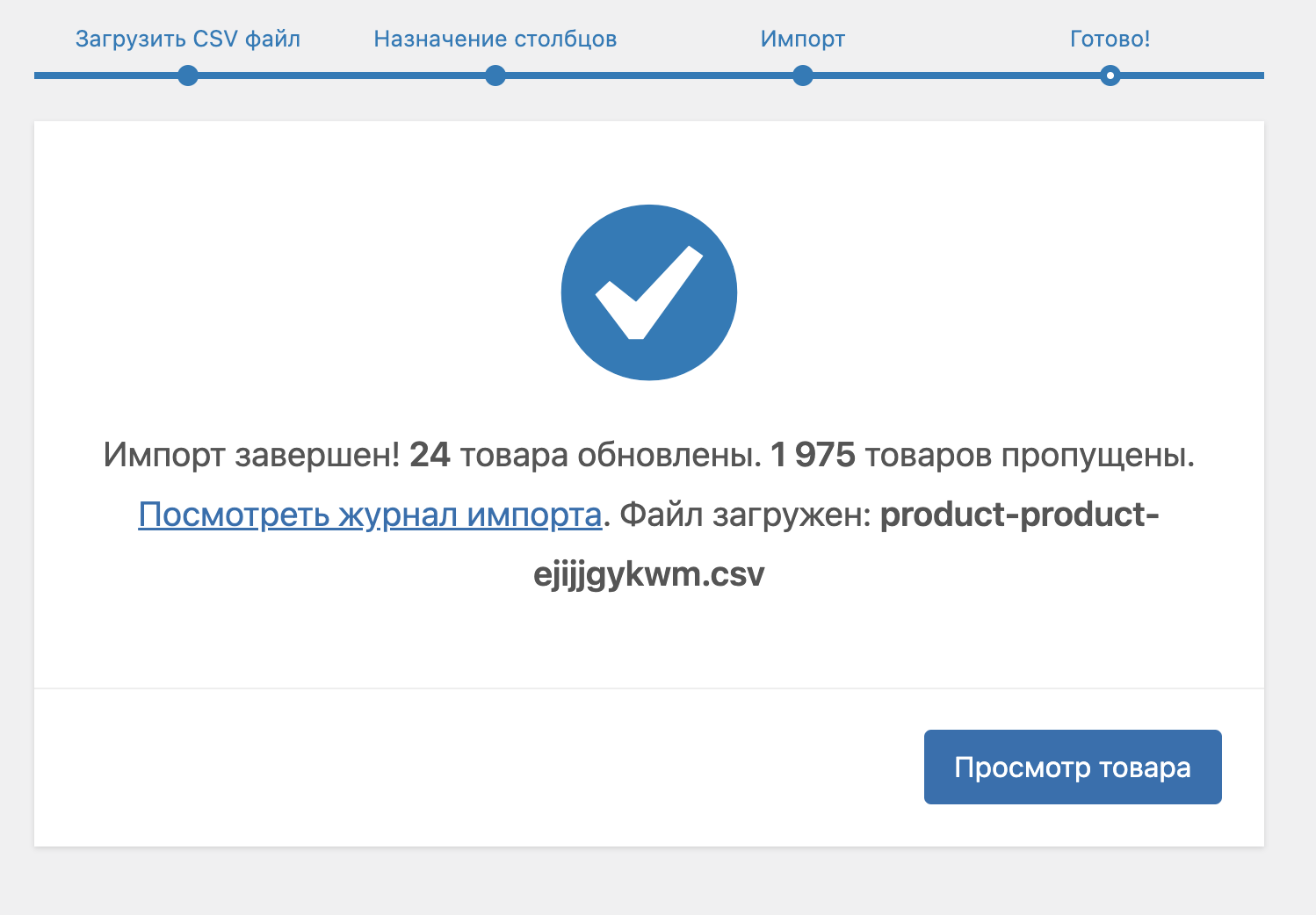 Здравствуйте, импортируем товары через импорт вукомерс на сайт, столкнулись со следующей проблемой.