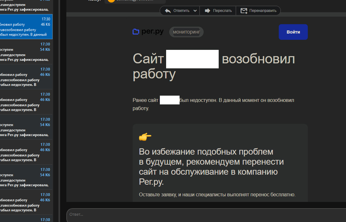 Странно, у меня там более трехсот доменов, но подобных писем не было.