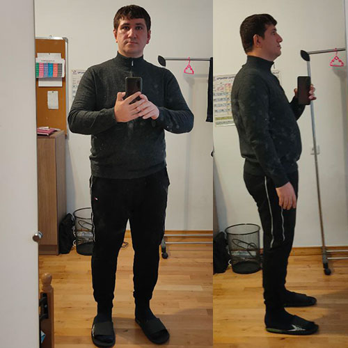На фотках до и сейчас. Мне еще нужно скинуть 34 кг. Да, я хочу быть худым, мне не нужны рельефы и мышцы. Я хочу одеваться красиво, я голым по улицам ходить не собираюсь. Мотивация похудеть одна, вернуть тело, которое у меня было до 21 года. Будь проклято ожирение, которое превратило меня в это!