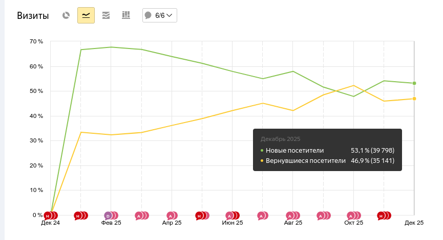 Даже месяц был, когда вернувшихся было больше. А значит не только случайно сайт находят и забывают, значит нужны им какие-то сервисы, пользуются.