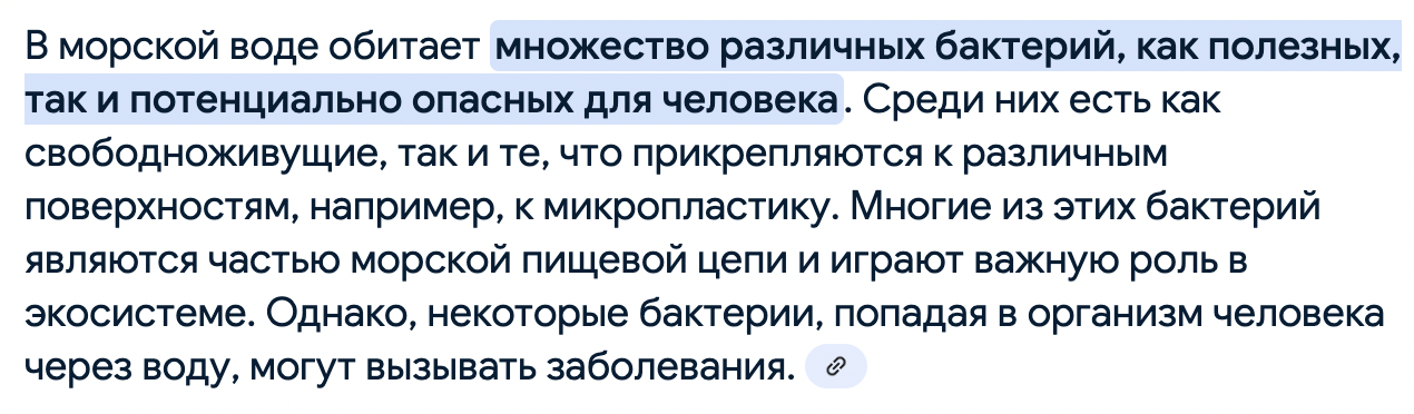 На самом деле бактерии вполне себе живут в морской воде. Чтобы они погибли, концентрация соли должна быть, как в мёртвом море.