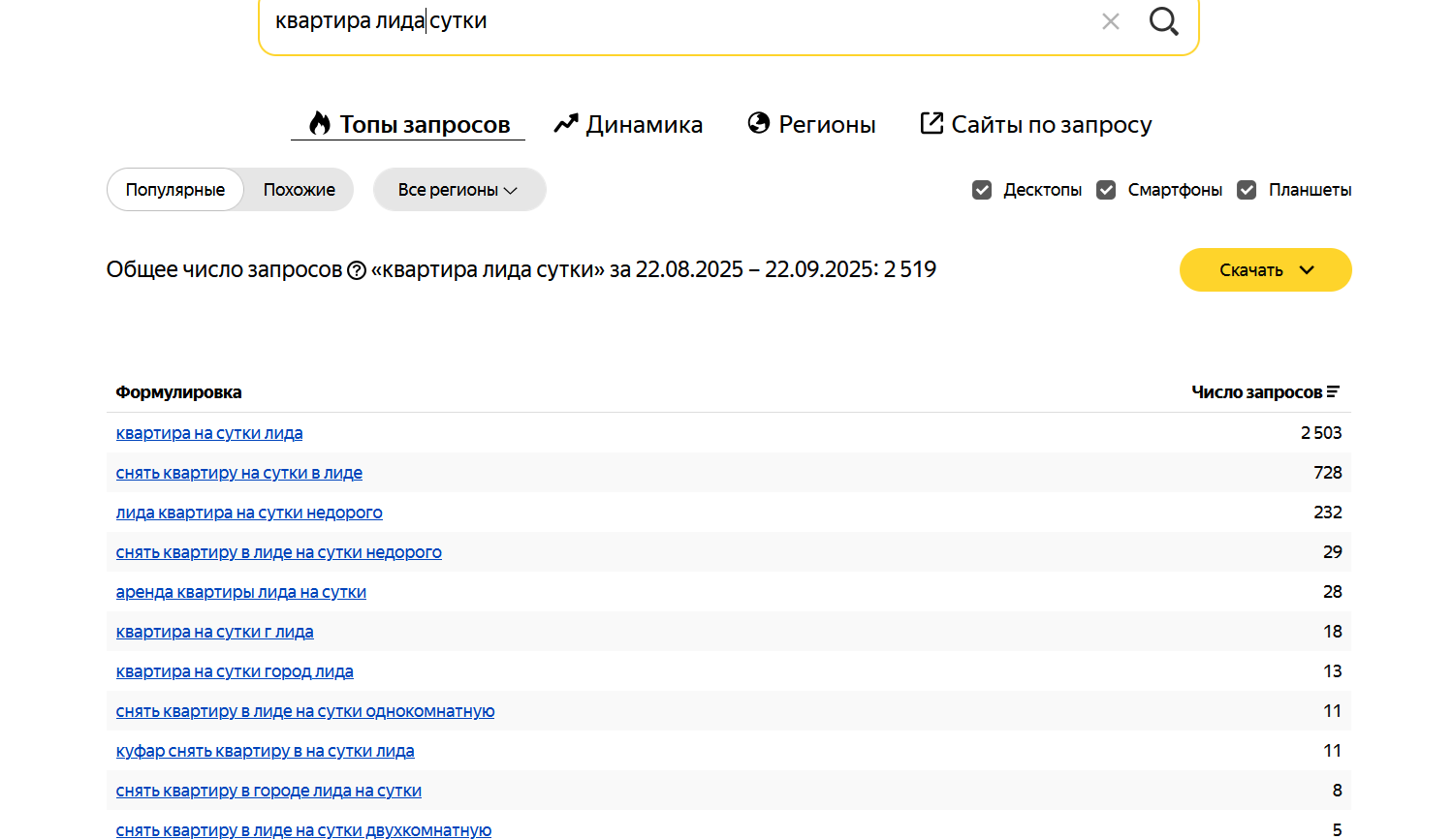 Что ты мне показываешь, вот по всем запросам и это толькочасть В общем не неси пурги, что агрегаторы нельзя обойти Или ты наверно думаешь, что один запрос точный только в топе, а по остальным в жо..))))