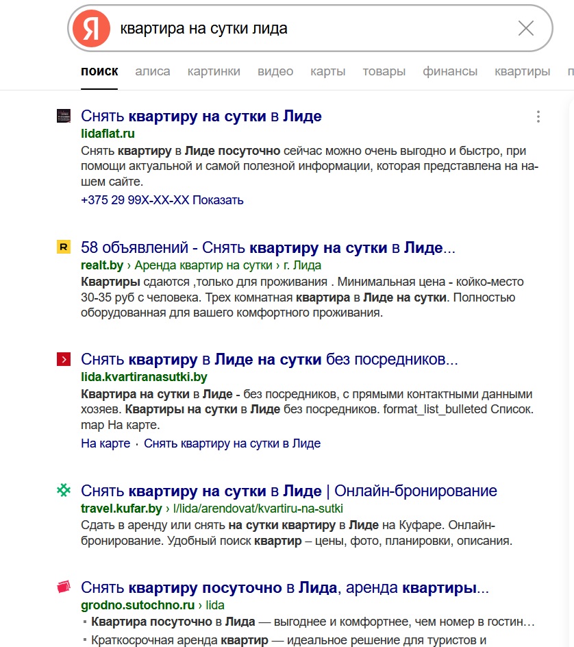 Пример с Лидой огонь, мне очень понравилось. Можно ещё "Квартира с Лидой на сутки". Тоже конкурентная ниша, но там сайты не всегда успевают траст набрать. )