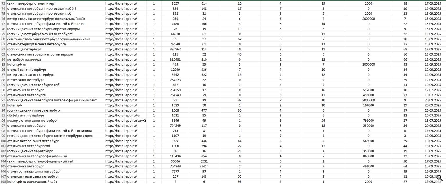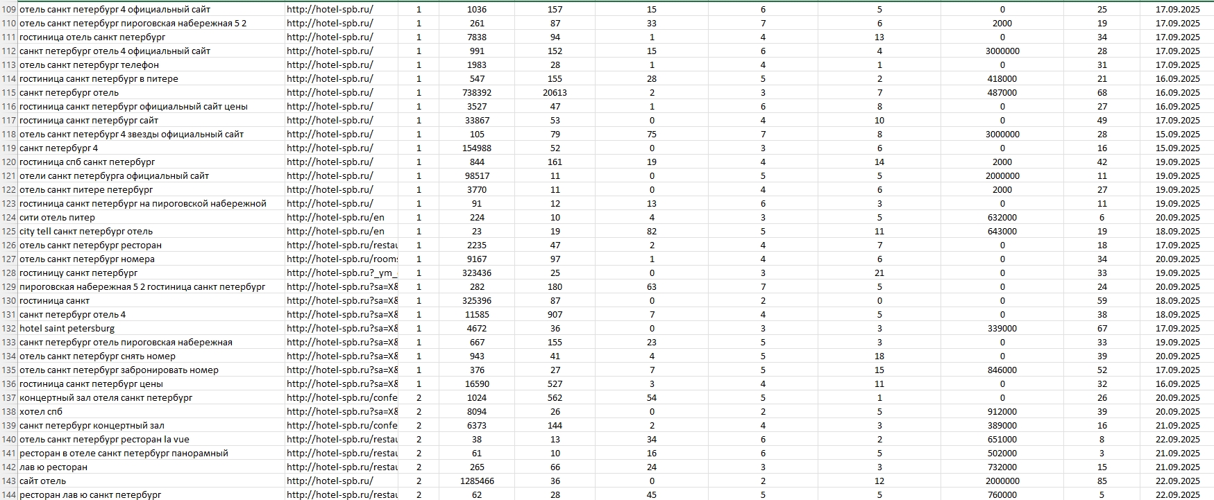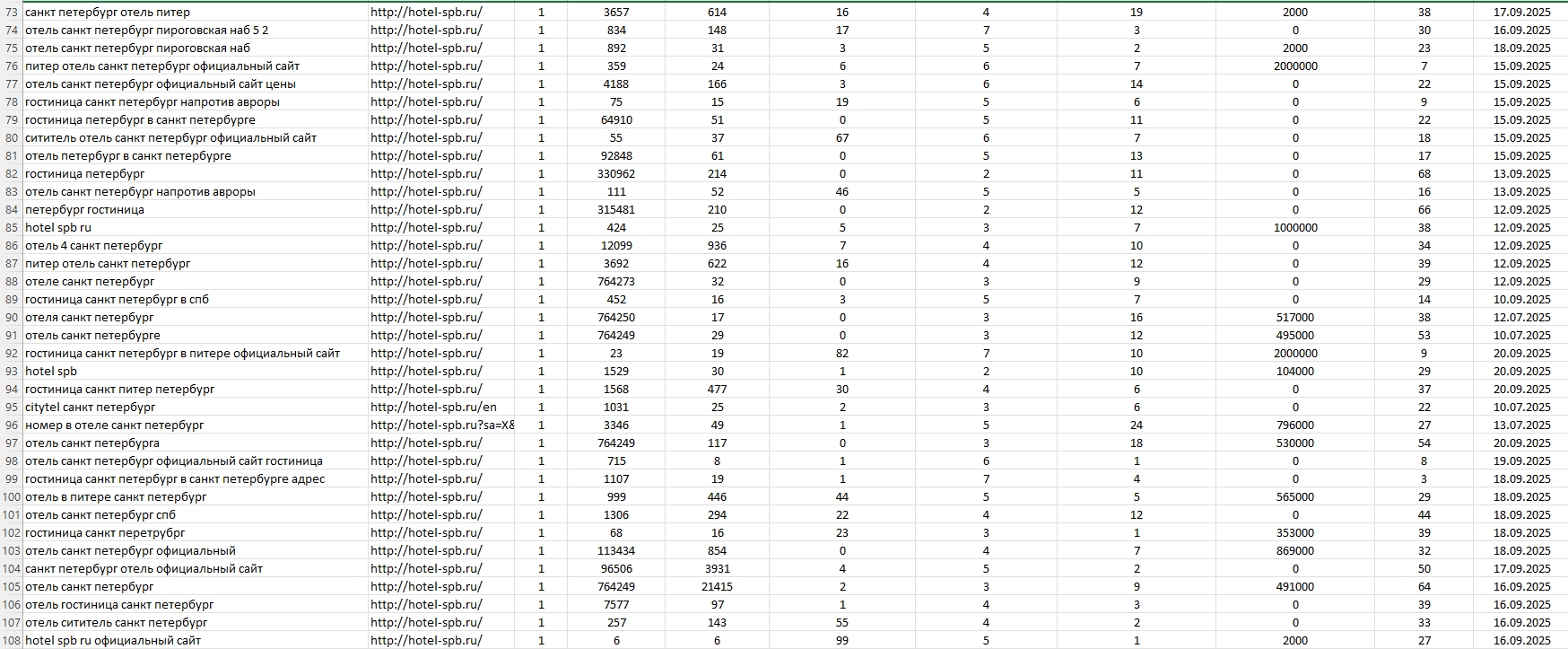с довольно любопытными примерами набора трафика с характерной спецификой СПБ,