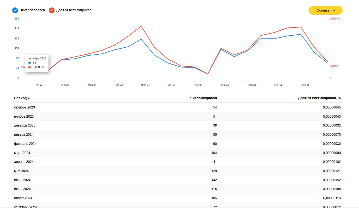 Ну хоть чуть-чуть наперед подумай и статистику остальную посмотри - у них нет накрутки коммерческих запросов.