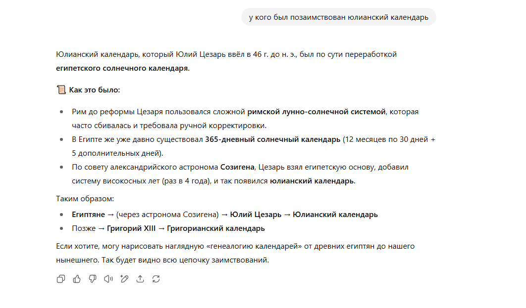 Не может ваш чат жопити вам объяснить, что вы живете по календарю, который придумали в Египте. Вот вы все, как и евреи не узнаете правды. С его точки зрения, евреи живут по своему календарю, который сами изобрели, но он григорианский, он же юлианский, он же египетский, а названия месяцев евреи взяли у вавилонян))))