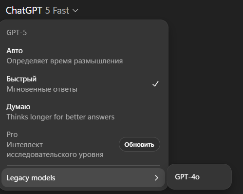 Наконец-то и мне вернули 4o и убрали автоматическую дурацкую маршрутизацию, хоть тупить перестал и ошибки ловить постоянно.