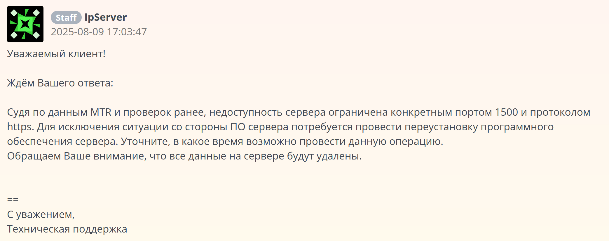 Это последнее, что мне ответили. На данный момент переустанавливают ПО на сервере.