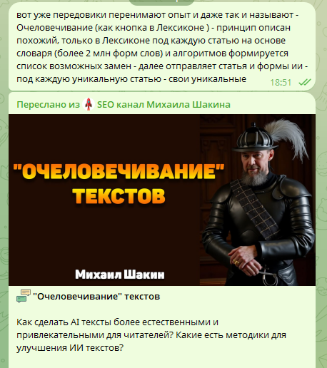 уже в тг каналах топов принцип Очеловечивания транслируют :)
