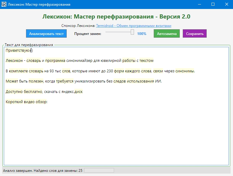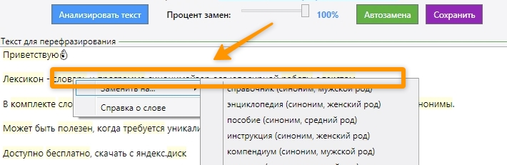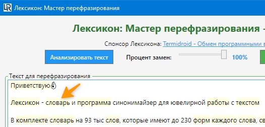 Лексикон - словарь и программа синонимайзер для ювелирной работы с текстом
