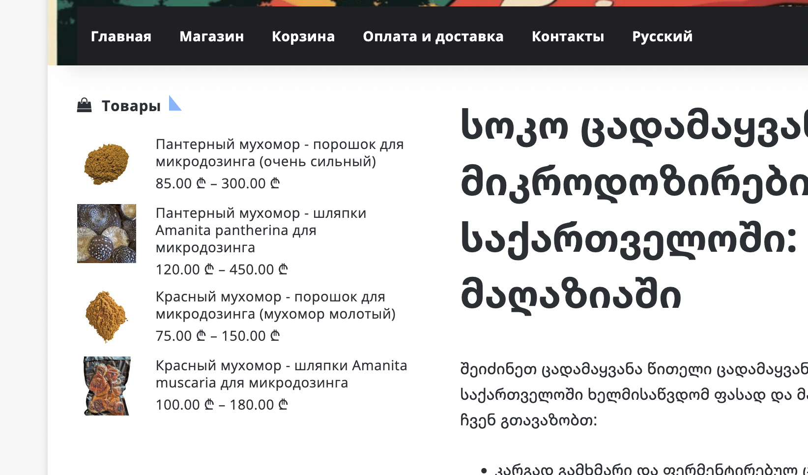 Для сравнения — рабочая страница продуктовой метки (не статьи/записи), которая открывается нормально: https://muhomory-v-gruzii-kupit.com/product-tag/amanita-muscaria-mikrodozing/